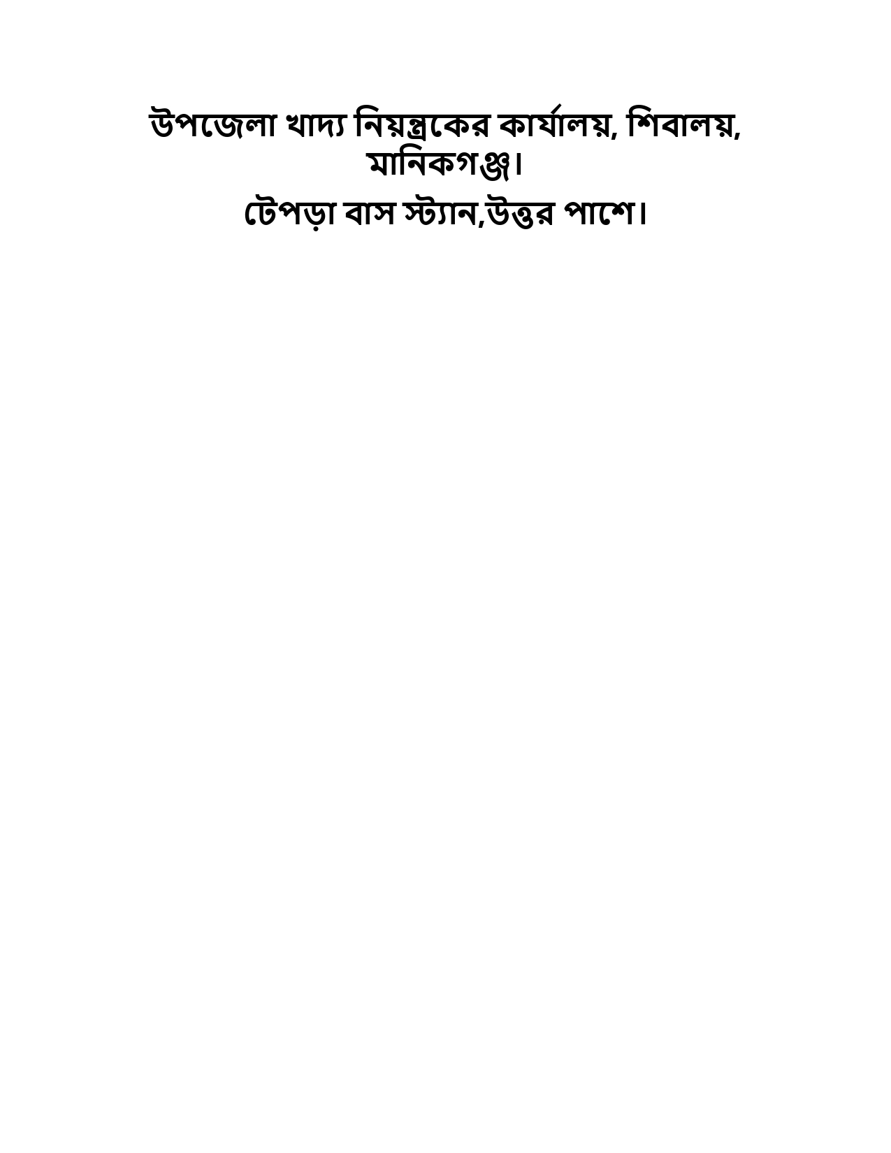 উপজেলা খাদ্য নিয়ন্ত্রকের কার্যালয়, শিবালয়, মানিকগঞ্জ